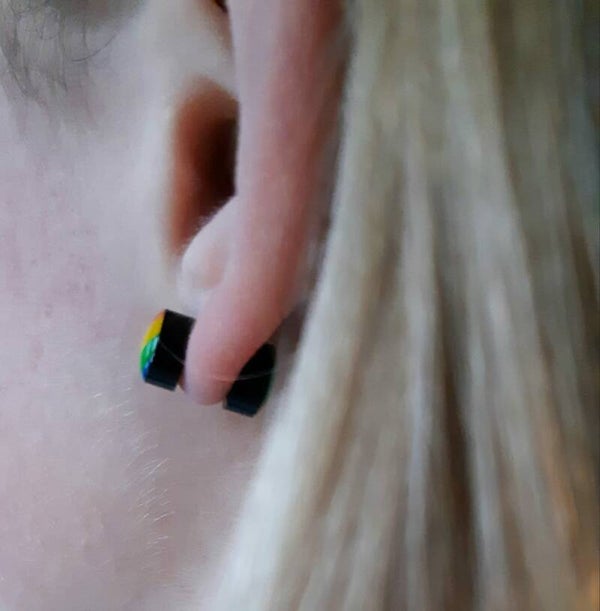 Stoere zwarte studs met Pride-kleuren. De stopper aan de achterkant is identiek aan de voorzijde. De steker is van RVS.